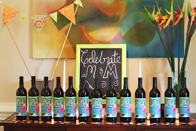 There were lots and lots of of handmade banners and I made custom labels for wine bottles with another Gabby photo of M&M for them to give to our guests. It was a really easy and fun project.